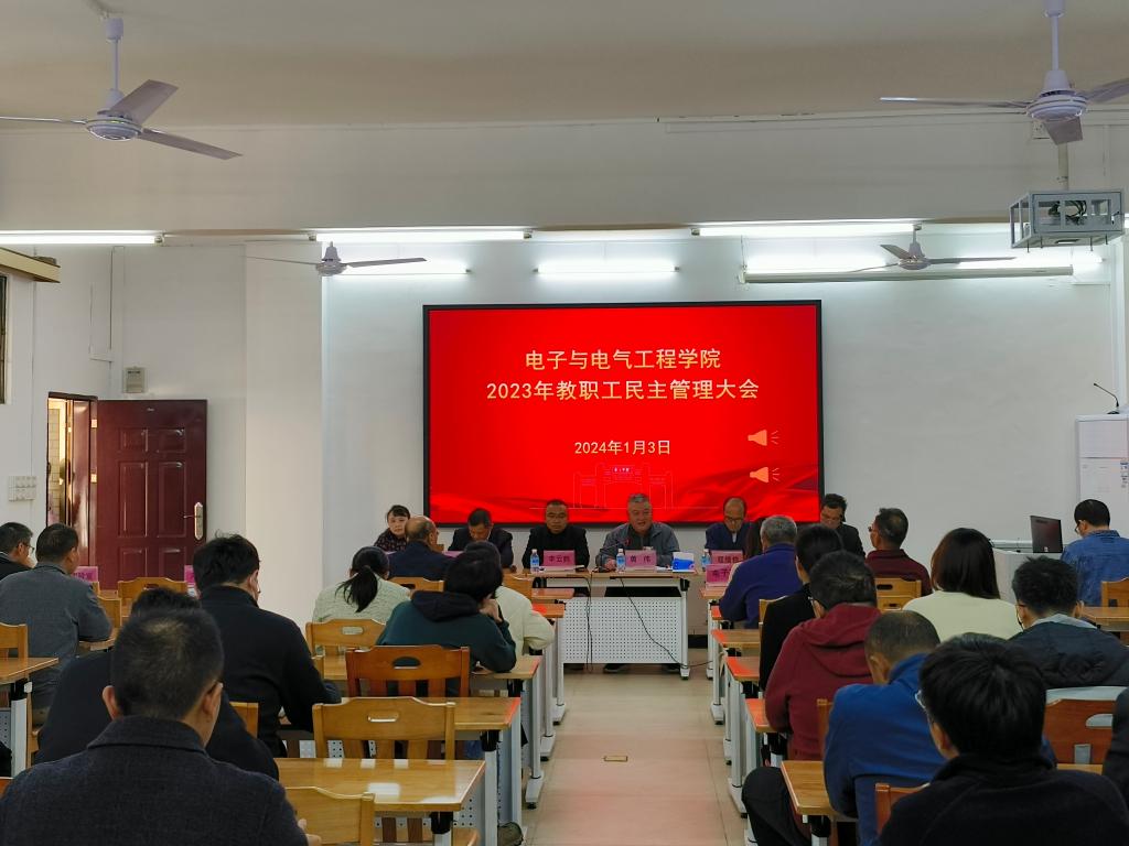 【本网讯】2024年1月3日,电子与电气工程学院在实验大楼128会议室召开2023年教职工民主管理大会,我院领导班子成员、全体教职工参加此次民主管理会议。学校考核组代表人事处副处长吴绘华出席会议并作指导,会议由学院党委书记黄伟同志主持。