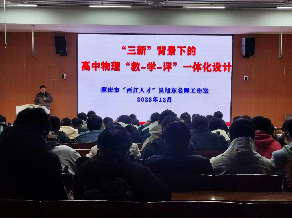 最后,吴旭东主任以《“三新”背景下的高中物理“教-学-评”一体化设计》为主题,分享了高中物理教学的最新理念和实践经验。他结合“三新”背景,深入探讨了高中物理教学的教、学、评一体化设计,为同学们提供了有益的参考和启示。学生提问与互动环节中,吴主任对学生的问题进行了详细的解答,并给予了积极的鼓励和建议。