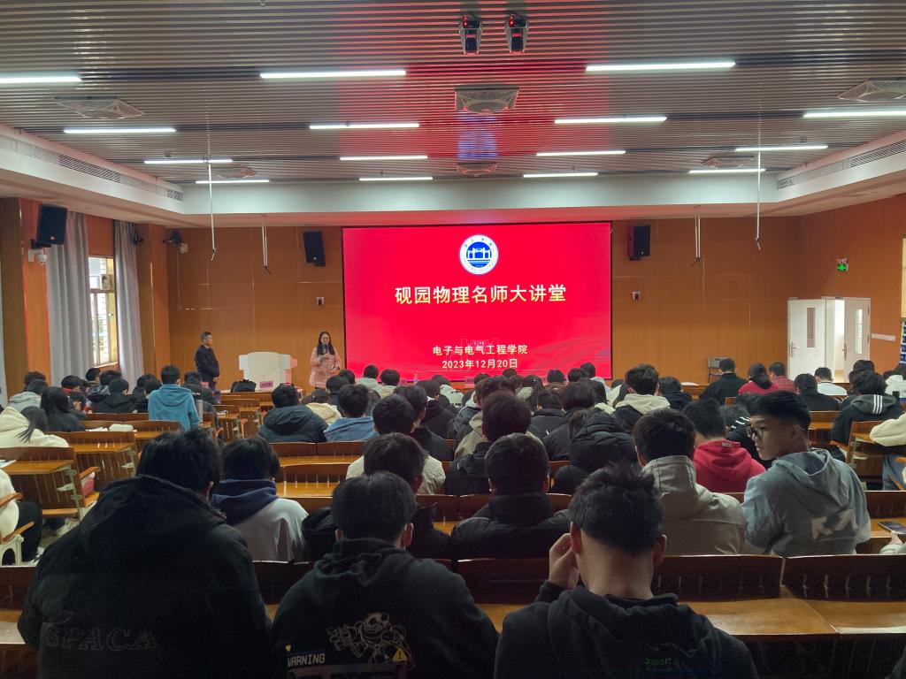 2023年12月20日下午,肇庆学院电子学院首届“砚园物理名师大讲堂”活动在主校区第二教学楼704开展。本次活动由电子学院程绪信副院长组织安排、刘立程副院长主持会议,学院2021级、2022级、2023级物理学专业全体学生参加。此次讲座邀请了三位主讲专家,分别是广东肇庆市颂德学校房永俊副校长、广东肇庆中学吴旭东主任和广东肇庆中学高湘科组长,为学生们带来教师教学、专业发展、职业生涯规划等主题的讲座分享。