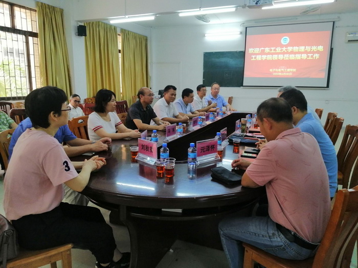 2022年6月30日在党的生日即将来临之际,,广东工业大学物理与光电工程学院赵韦人院长,带领其学院党支部一行十余人,来到电子与电气工程学院进行党员活动交流以及学术活动交流。电子学院党委书记黄伟、副院长程绪信以及各系部负责人参与了交流会。