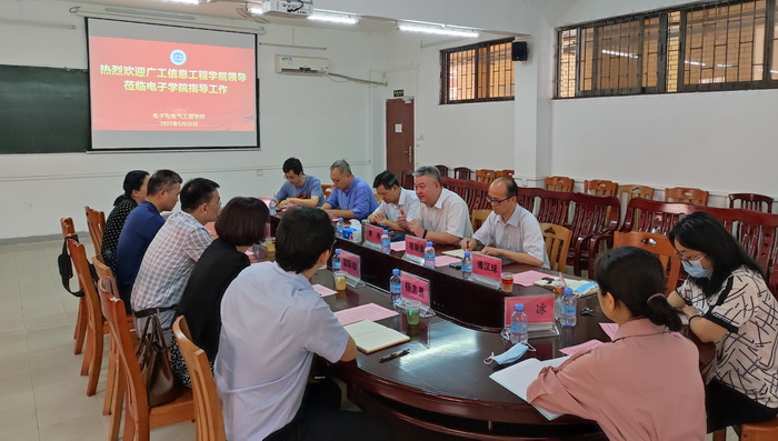2022年5月20日下午,广东工业大学信息工程学院一行4人在党委书记邵际珍、院长韩国军的带领下来到电子与电气工程学院进行工作交流。广东工业大学帮扶工作队队长刘怡军、广工信息工程学院帮扶队员刘立程博士(任职电子与电气工程学院副院长)、学院班子成员及部分系室主任、专业负责人等出席座谈会议。