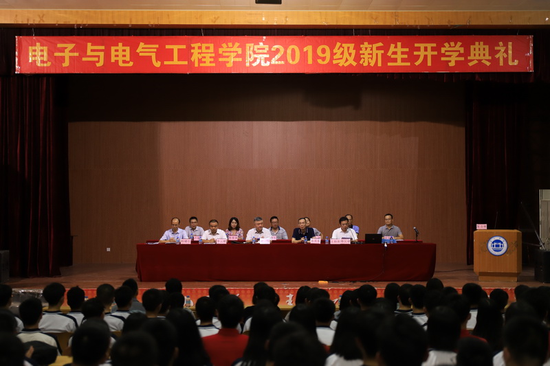本网讯(记者 郑晓勤)为了帮助新生尽快适应大学新的学习生活,9月10日晚,电子与电气工程学院2019级新生入学典礼于学生活动中心隆重举行。院党委书记黄伟、院长陈英俊、副院长程绪信、李云鹤等学院领导和各系主任、新生班主任、全体辅导员出席,开学典礼由院党委副书记傅汉球主持。
