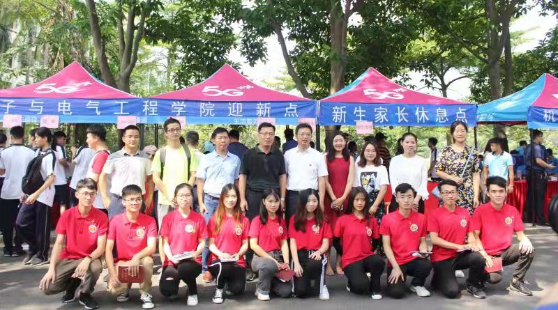 为做好此次迎新工作,解决新生报道所遇到的问题,促使新生报到工作安全有序地进行,电子学院于9月7日至8日在肇庆学院海容路设立新生迎新点,由志愿者带领新生到迎新点进行电子注册,办理新生入学手续、入住宿舍等工作。学校党委书记曾桓松、主持行政全面工作的副校长吴业春、校党委副书记谢冠华和电子学院黄伟书记,陈英俊院长、傅汉球副书记以及年级辅导员、班主任等更是亲临迎新点,协调新生接待工作,并与家长亲切交谈,询问新生家庭情况,勉励新生入学后好好学习,用优良的成绩回报家长和社会。