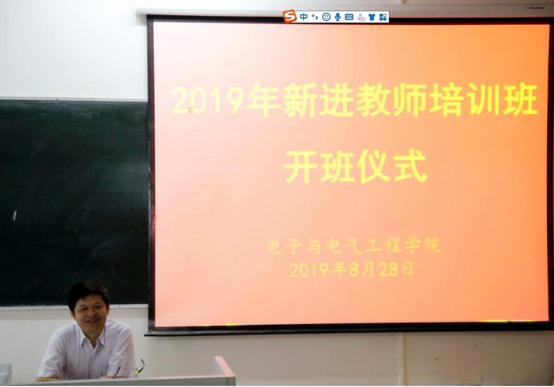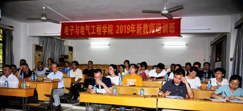 2019年8月28日,电子学院在实验大楼128室举行2018-2019学年度新进教师培训班开班仪式,校党委书记曾桓松出席并作重要讲话,电子学院党委书记黄伟、院长陈英俊等学院领导和相关新教师参加。