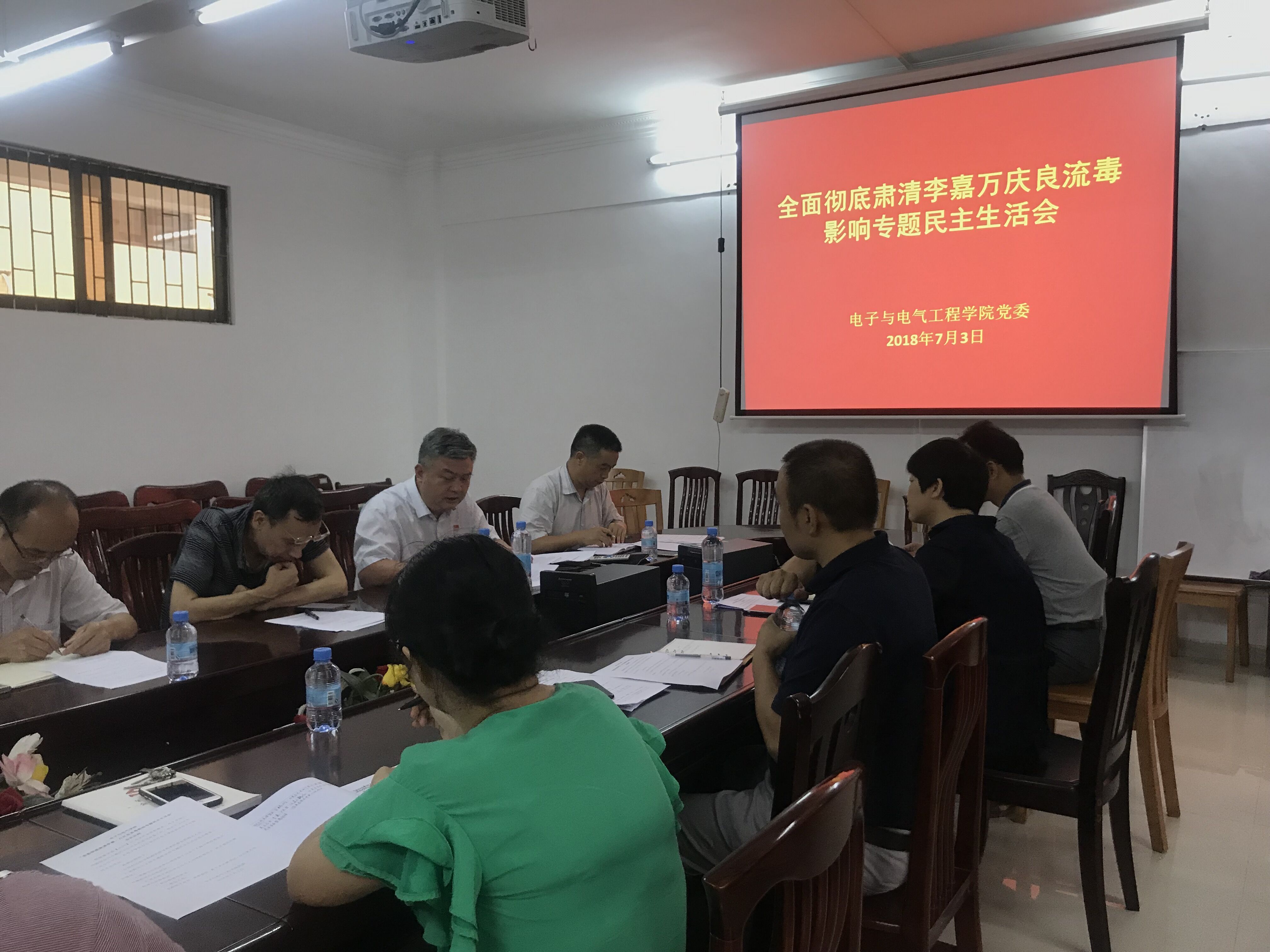 2018年7月3日下午,我院在会议室召开了主题为全面彻底肃清李嘉万庆良流毒影响专题民主生活会,教务处副处长李妍作为校级代表莅临指导,我院党政班子成员、党委委员、教工党支部书记、办公室主任、专职组织员等参加了本次专题民主生活会,民主生活会由黄伟书记主持。