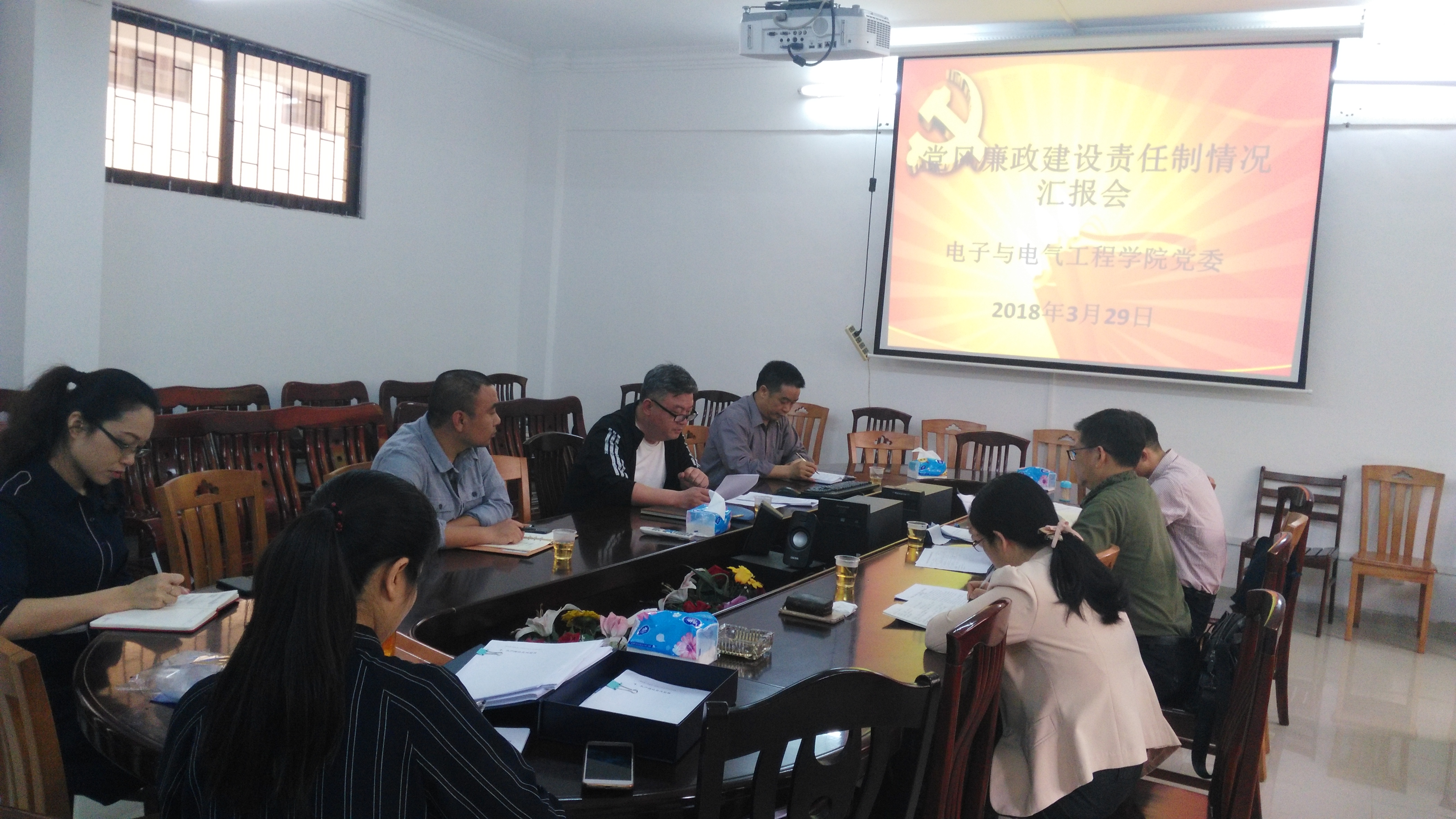 陈处长听完黄书记的汇报后,充分肯定了我院党委在党风廉政建设责任制工作方面所付出的努力,并希望我院党委上下一心,继续推进党风廉政建设责任制工作,为学院的发展保驾护航。