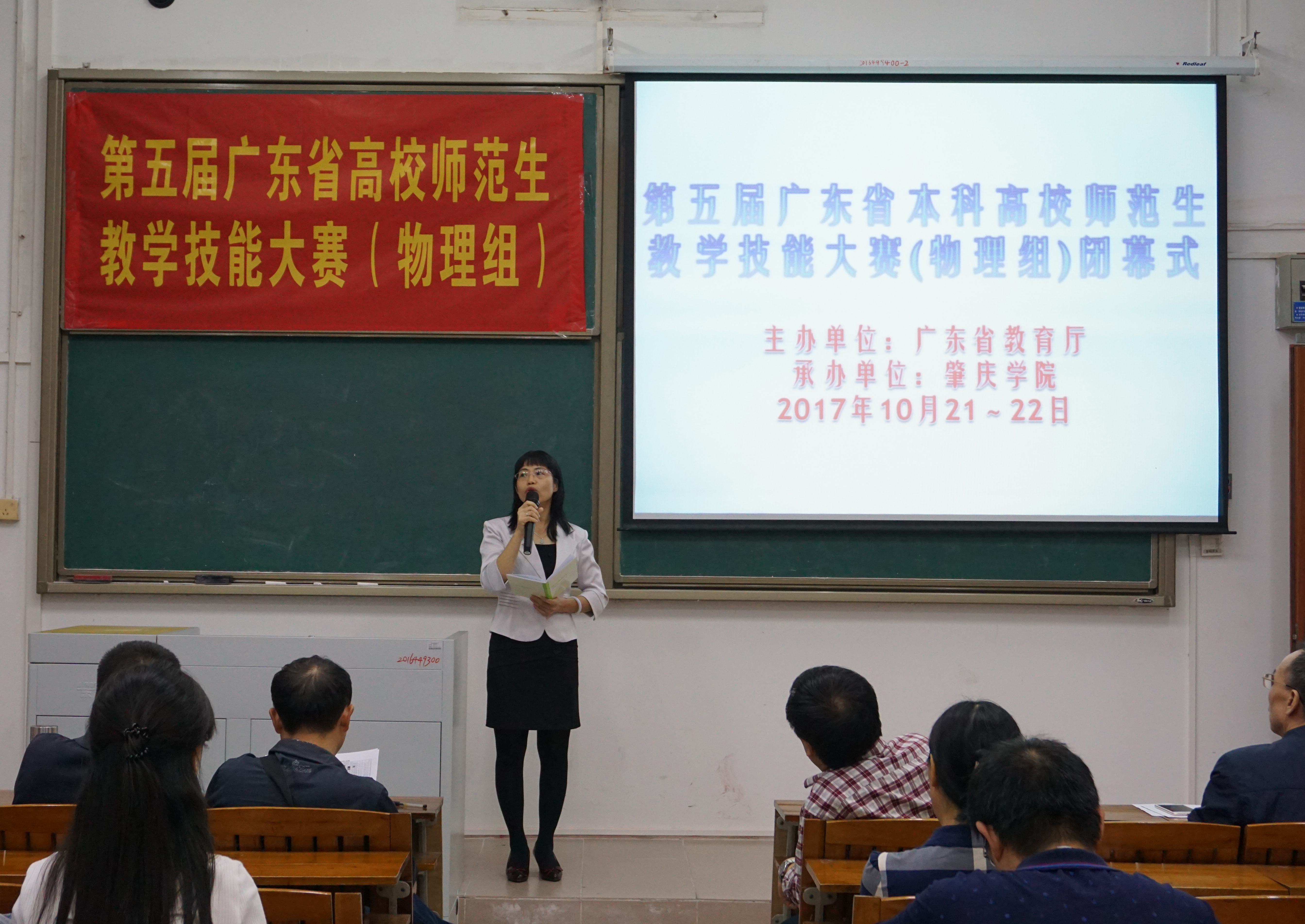 本网讯(记者 卢永康)为了促进教学改革,提高全省师范生的教学技能和综合素养,2017年10月21日-22日,由广东省教育厅主办,肇庆学院承办的第五届广东省本科高校师范生教学技能大赛(物理组)在我校第一教学楼成功举行。