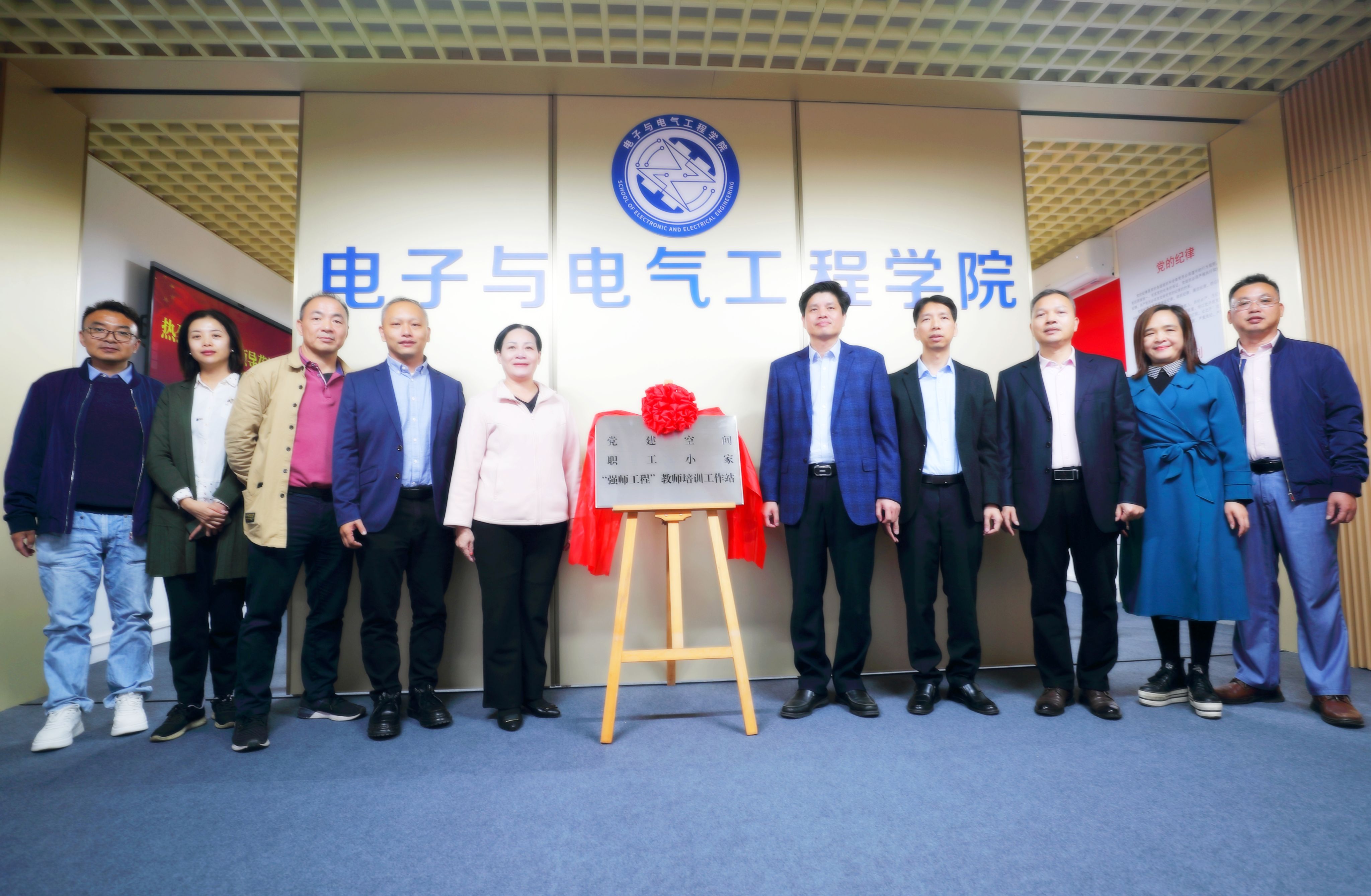 【本网讯】11月26日,电子与电气工程学院举行“党建空间”&“职工小家”&“强师工程教师培训工作站”揭牌仪式,学校党委副书记欧洪湛、学校工会、资产设备管理部、总务后勤部、基础建设部、教师教育学院等单位负责人应邀出席。