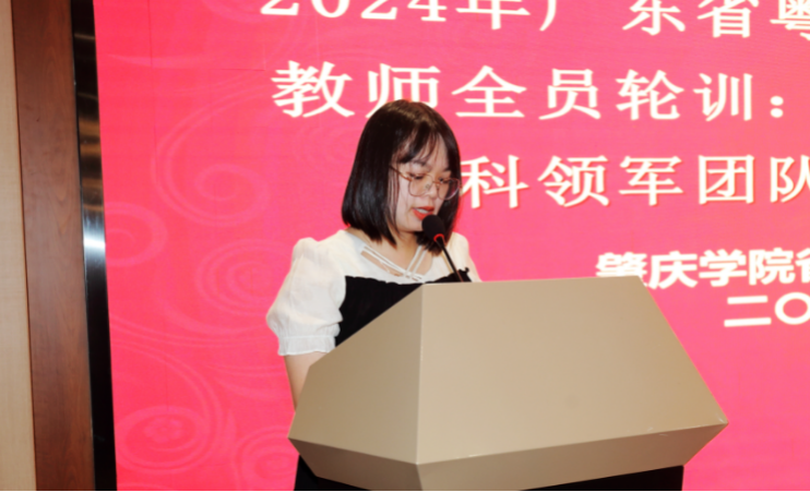 来自云浮市恒大学校的黄建容老师代表全体学员向组织此次培训班的云浮市教育局、云浮市教师发展中心、肇庆学院及在场的各位领导表示衷心的感谢,并表示能够参加此次培训,倍感荣幸。同时深刻认识到作为一名老师所肩负的责任,必须不断提升自我,团结协作,将学到的知识,用在教学实践上,在提升个人教学能力的同时助推学生全面发展。