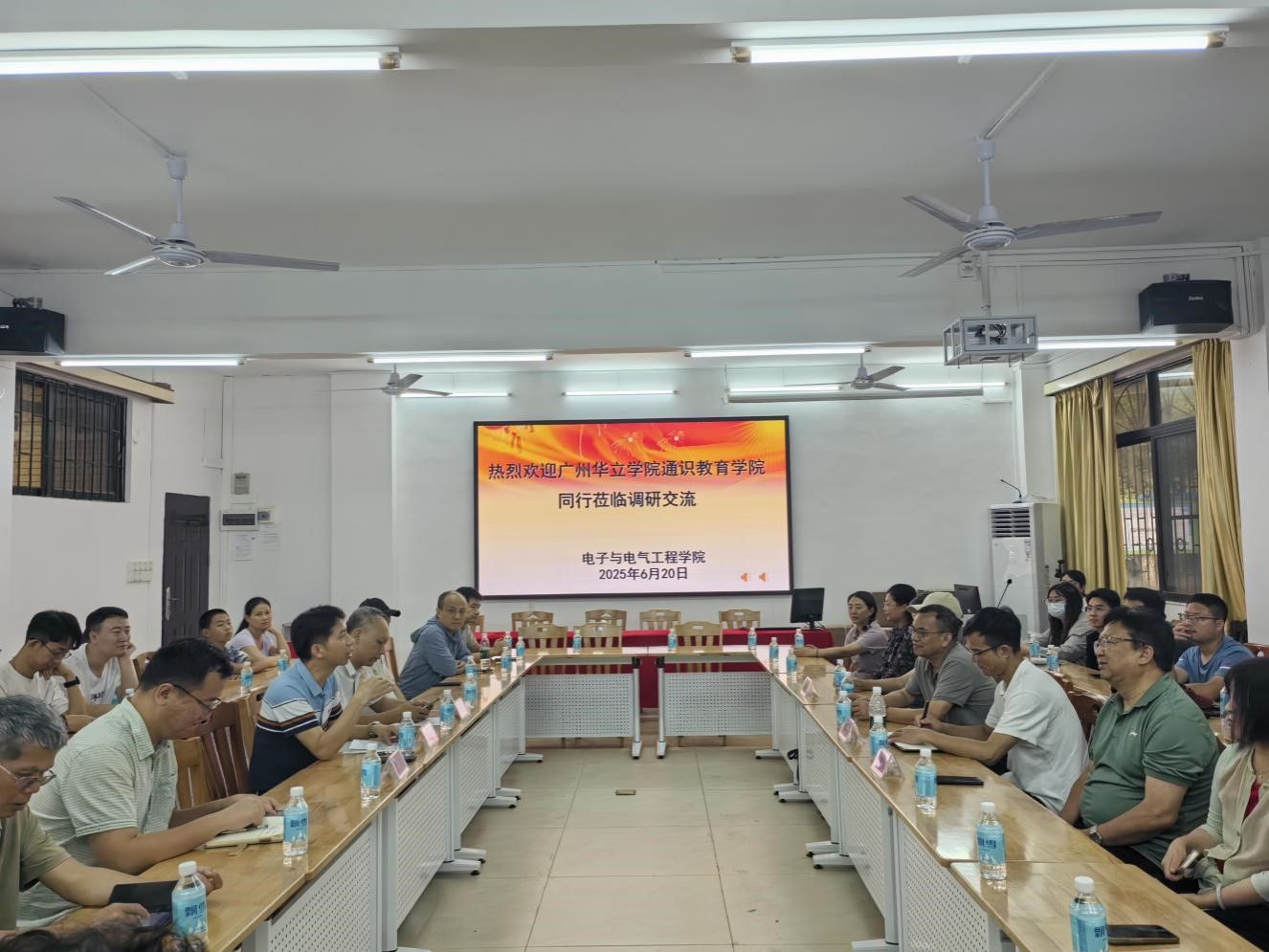 刘彭义对电子与电气工程学院的办学成绩表示充分肯定,并介绍了广州华立学院通识教育学院办学历史、师资力量、办学特色以及未来办学方向。他希望今后双方在人才培养、学科建设等方面进一步加强合作,推动两校之间更广泛、深入的交流。在随后的座谈环节,双方围绕人才培养的关键环节、教学质量提升的有效策略等进行了深入交流。大家各抒己见,分享经验,探讨问题,共同寻求在新时代教育背景下,高校学院发展的新思路与新方法。