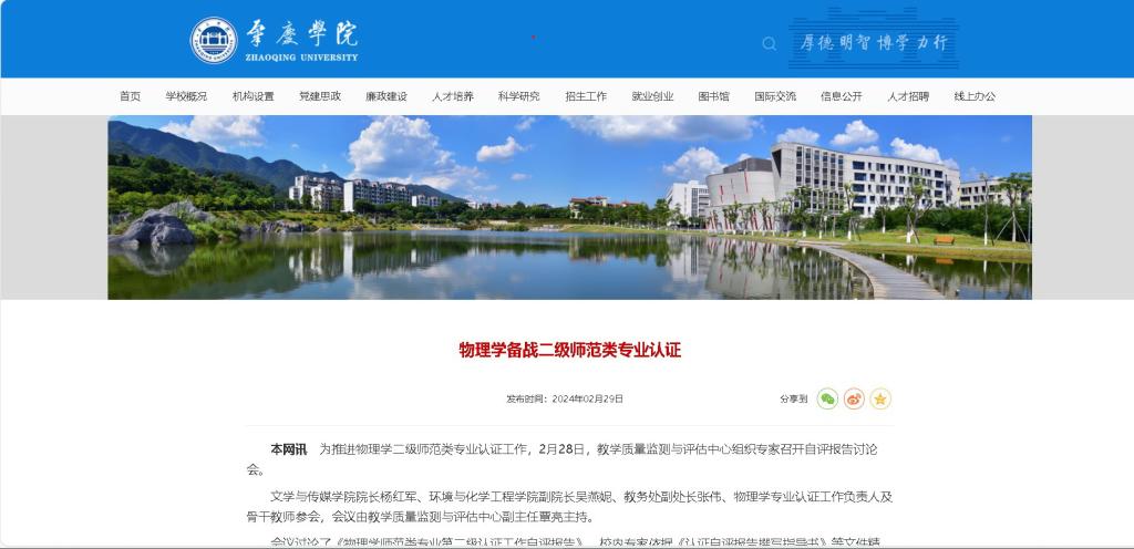 2月29日,学校网站新闻报道电子与电气工程学院物理学专业备战二级师范类专业认证。