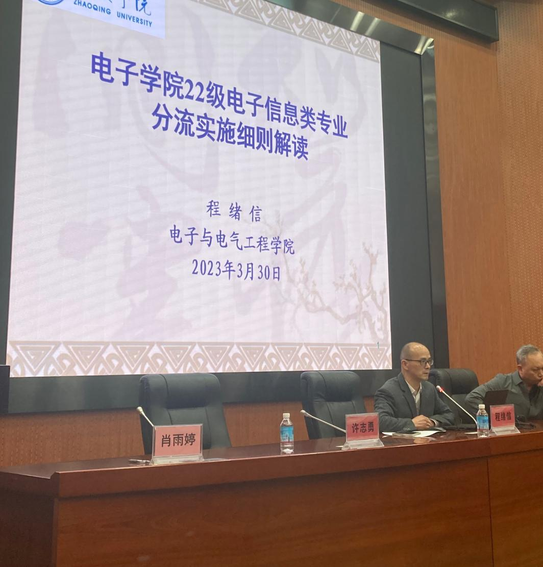 会议最后,我院教学副院长程绪信、电子信息科学与技术专业负责人陈庆华、电子科学与技术专业负责人许志勇针对答疑环节当中同学们普遍关心、容易混淆的内容进行了补充说明,并对同学们在专业选择和未来发展等方面表达了真诚的鼓励和期盼。至此,本次宣讲会的全部内容圆满完成。