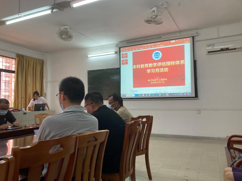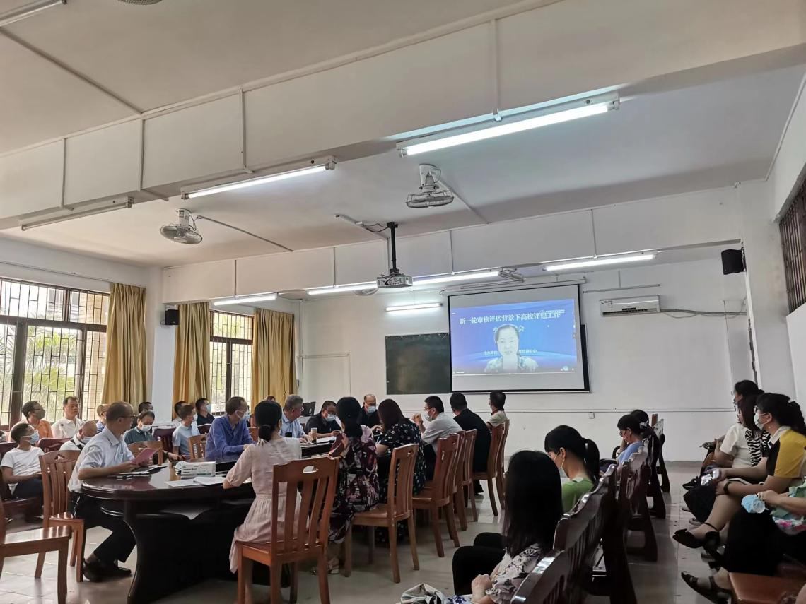 2022年9月21日下午3时,我院响应学校关于开展教育教学审核评估指标体系学习月活动的通知要求,组织学院班子成员、系主任、专业负责人、办公室主任、教学秘书、全体教师于学院208会议室开展了以本科教育教学审核评估学校评建实践为主题的视频学习活动。