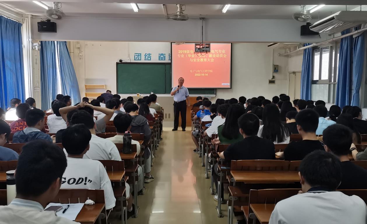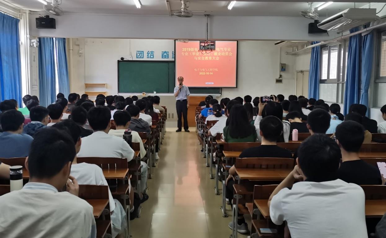 10月14日上午,我院在第二教学楼403室召开2019级工科专业实习动员、就业与安全教育大会,学校教务处副处长张伟、学院副院长程绪信、学院党委副书记傅汉球、电子与通信工程系主任陈荣荣、电气工程系主任肖奇军、负责实践教学教师赵肇雄、2019级工科专业学生等师生出席了此次大会。