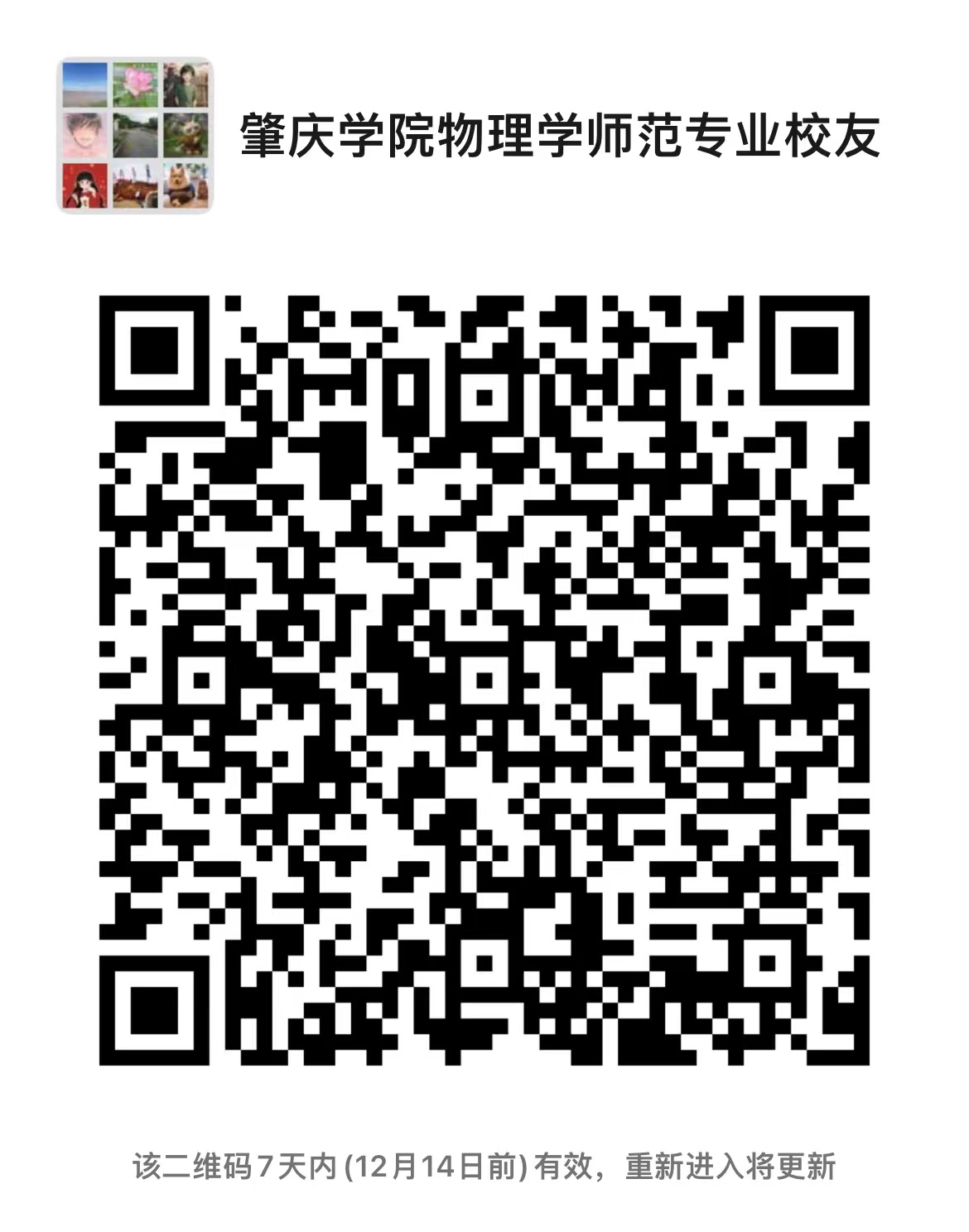 4. 邀请各位校友加入微信“肇庆学院物理学师范专业校友”群(二维码)。