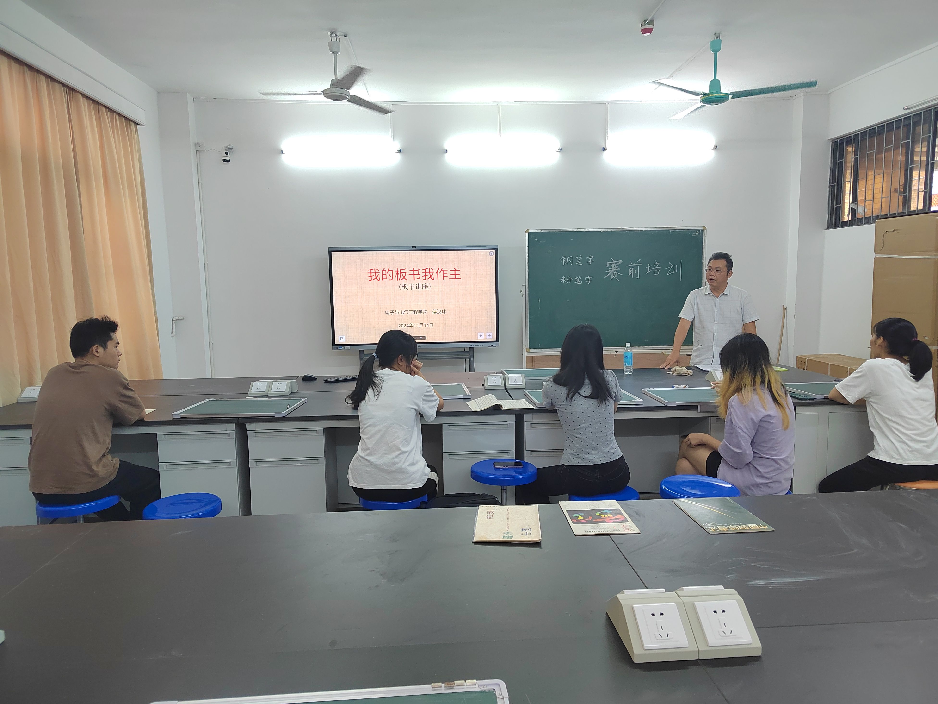 【本网讯】2024年11月14日,电子学院在实验大楼114训练室举行学校“两字一画”大赛赛前培训会。学院党委副书记傅汉球参加培训并作专题辅导,拟参加学校“两字一画”大赛的10多名同学参加培训。