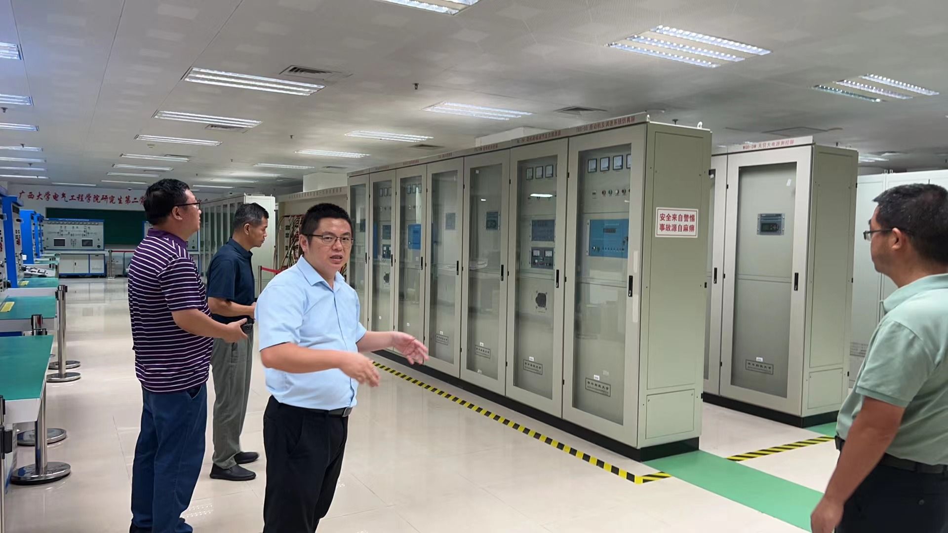 调研组认真走访了电路/电工技术实验室、电气工程技术实训室、电子技术实验室、电力系统动态模拟与数学仿真一体化实验室、信号与控制实验室等实验场所,深入了解了各实验室的设备配备、教学安排和管理模式。在调研过程中,团队成员与广西大学的相关负责人就实验室建设及实践教学中的问题和经验进行了交流,为后续进一步优化我院实验教学提供了参考依据。