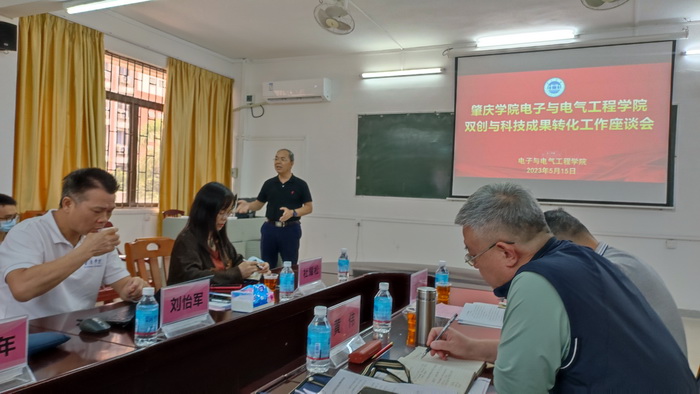 【肇梦空间网讯】5月15日,肇庆学院大学科技园管委办联合肇庆学院科技处、肇庆市科技企业孵化器协会等单位部门到太阳成集团tyc122cc入口召开双创与科技成果转化工作座谈会。广工帮扶队队长刘怡军、太阳成集团tyc122cc入口党委书记黄伟、科技处副处长周丽、肇庆市科技企业孵化器协会秘书长杜耀松及电子与电气工程学院教师参加会议,肇庆学院大学科技园管委办主任陈学年主持会议。