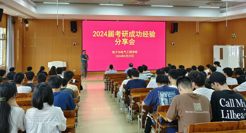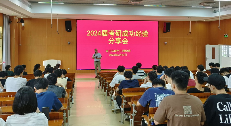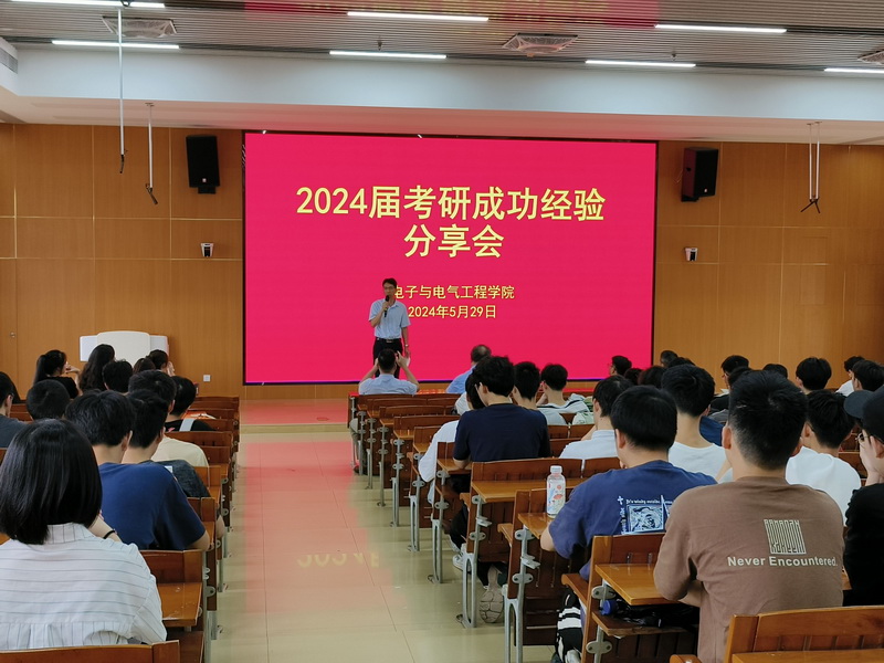 【本网讯】5月29日,电子学院在第二教学楼704举办2024届考研成功经验分享会。学院党委书记王浩发,广东工业大学帮扶队员、硕士生导师张伟,学院副院长刘立程,党委副书记傅汉球,硕士生导师陈元斌,辅导员邱景鸿和5名考研成功的2024届毕业生代表出席会议,2021级150多名同学参加。
