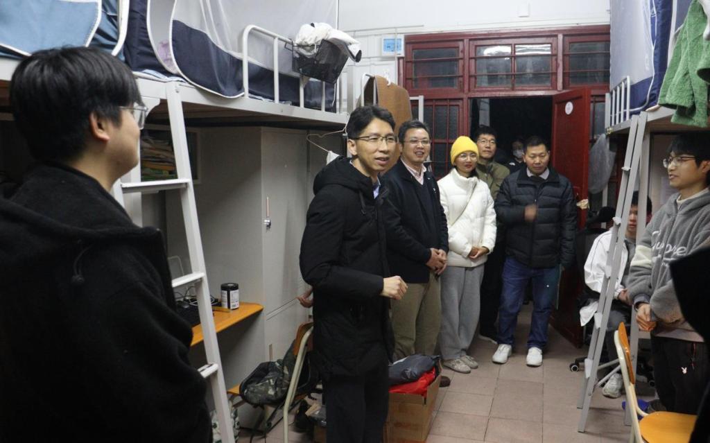 2月25日晚,院党委书记王浩发、副院长李云鹤、副书记傅汉球带领全体辅导员、班主任老师深入学生走访宿舍,了解学生返校情况,关心学生身心健康和思想动态,关心大四毕业班同学毕业就业情况,提醒同学们近期注意天气变化,防寒保暖,同时要开展爱国卫生运动,做好宿舍清洁卫生内务和注意消防安全,防止火灾发生,鼓励同学们在新学期初要明确学习目标,制定好学习计划,调整好日常作息,以饱满的精神状态迎接新学期。