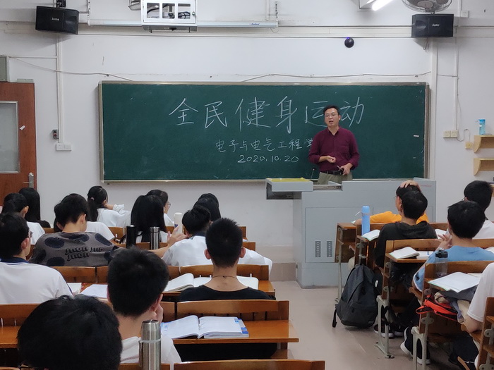2020年10月20、21日,电子与电气工程学院在2020级新生班级中开展全民健身运动。推广普及、学习了解陈式太极拳,组织观看由中央电视台与国家体育总局联合拍摄的纪录片《最高境界格斗术之解密太极传说》。全体2020级新生、带班党员、体育部干部共260多人参加活动,党委副书记傅汉球出席并参加活动。