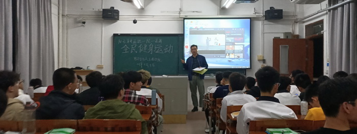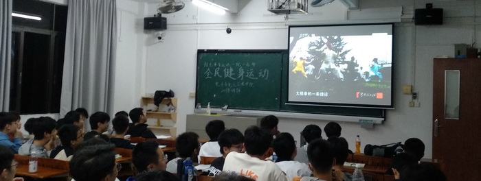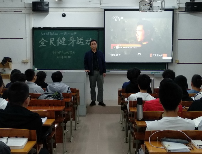 【本网讯】2021年11月9日晚,电子与电气工程学院在2021级新生各班级课室中开展全民健身运动--推广和普及陈式太极拳。全体新生通过观看由中央电视台与国家体育总局联合拍摄的纪录片《最高境界格斗术之--解密太极传说》,由陈式太极拳第十一代传人张志俊先生科学解密太极拳,从中学习和了解陈氏太极拳。2021级全体新生、值班老师、带班党员、体育部骨干共650多人参加活动,党委副书记傅汉球出席讲话并参加活动。