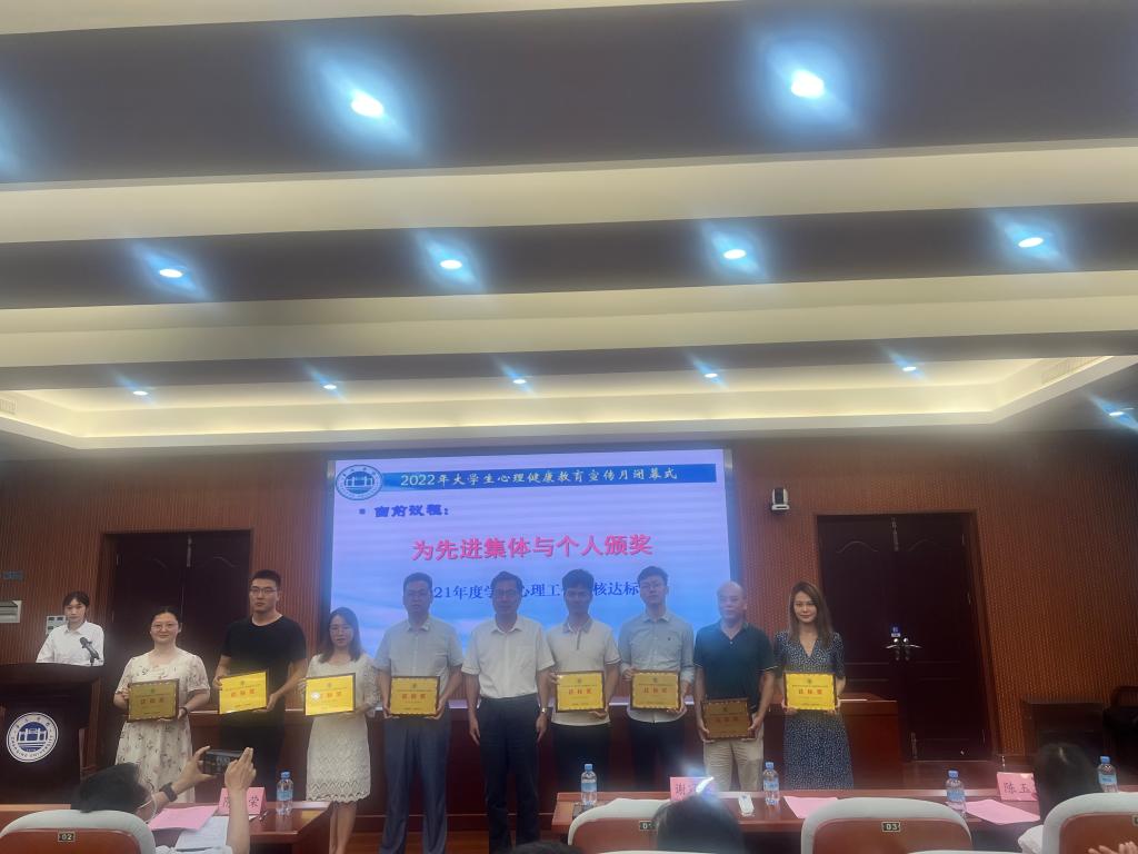 6月15日,学校举办2022年大学生心理健康教育宣传月闭幕式暨表彰大会,对在2021年度学生心理健康工作中表现突出、成绩优异的先进单位和先进个人以及相关获奖作品给予表彰奖励。我院党委副书记傅汉球和心理站站长刘雨阳参加会议。