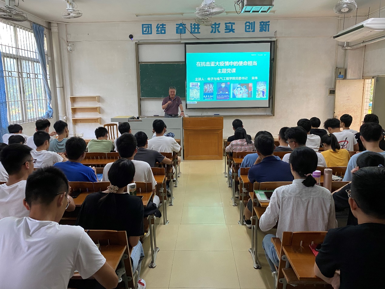 本网讯(记者 赖钧苏)2020年9月25日,我院开展“在抗击重大疫情中的使命担当”党课教育,党课由我院党委书记黄伟同志主讲,全体学生党员、发展对象以及入党积极分子参与了此次党课教育。