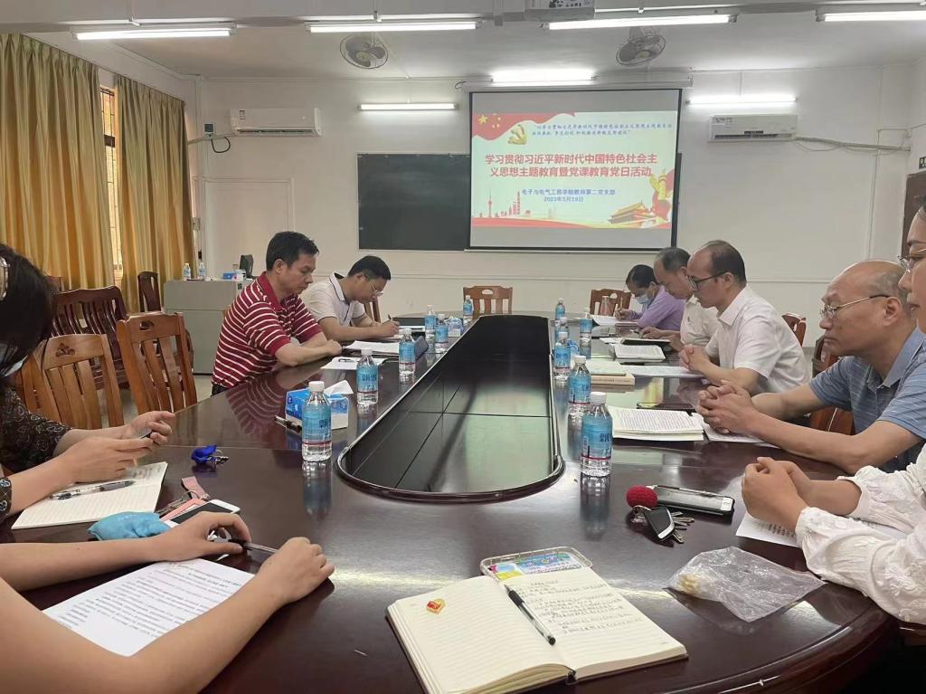 2023年5月19日上午,我院教师第二党支部在实验大楼208室召开学习贯彻习近平新时代中国特色社会主义思想主题教育党日活动暨党课教育,学校主题教育联络组第五组组长钟伙彬、组员刘刚参加支部活动。