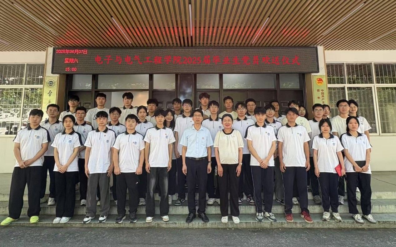 【本网讯】为深化毕业生党员党性教育,强化责任担当意识,电子与电气工程学院6月25日在初心堂举行2025届毕业生党员离校教育暨主题党日活动。学院党委书记王浩发、专职组织员刘雨阳出席,全体2025届毕业生党员参加会议,会议由刘雨阳主持。