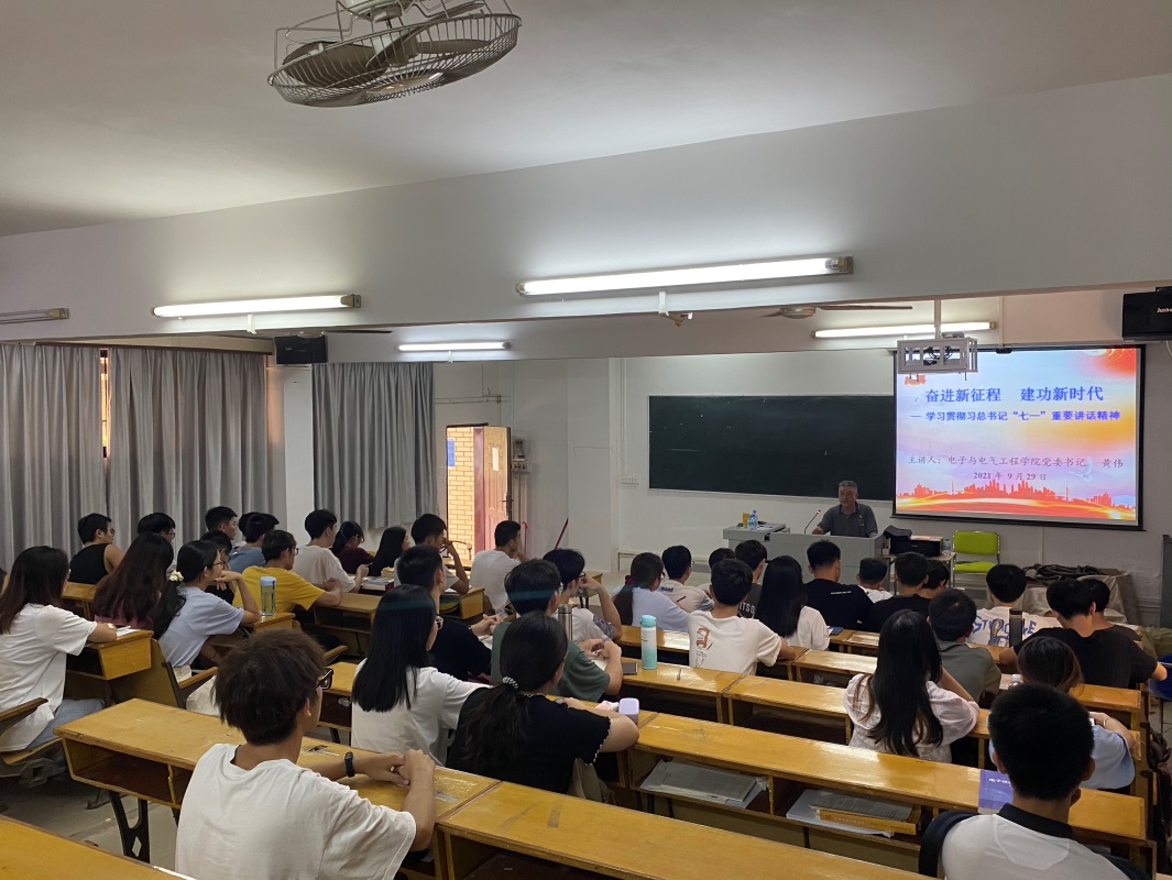 本网讯 (通讯员 蓝胜婷 温咏琳)为落实好在全党开展党史学习教育,使党史深入人心,进一步深化对党的认识,9月29日下午15时至16时,我院党委于实验大楼128室召开2021年第三期分党校培训暨党史学习教育专题党课——《奋进新征程 建功新时代》,此次党课由我院党委书记黄伟同志主讲,我院学生积极分子及党员代表参加了此次党课教育。