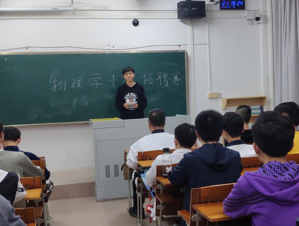 比赛结束后邓家鑫老师以物理专业的师范性质为基点,从表达能力、专业能力、逻辑思维能力及其特长分别对选手们进行了点评,他叮嘱同学们在面试的时候一定要将自己的特长展现出来,既不好高骛远,又不妄自菲薄,放平心态才能有好的面试表现。