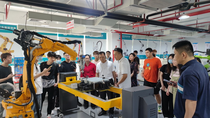【本网讯】2023年5月5日,在广东工业大学帮扶工作队队长刘怡军、帮扶队员张伟(任我校教务处副处长)、学生就业指导处处长梁建梅、我院副书记傅汉球、机汽学院副书记王非等的带领下,由辅导员刘雨阳老师组织电子学院、经管学院、机汽学院和外国语学院共27名师生到中山市松乐智能装备有限公司、广东光阳电器有限公司、广东省崧盛电源技术有限公司等进行参观交流,开展访企拓岗促就业,校企合作共育人等工作。