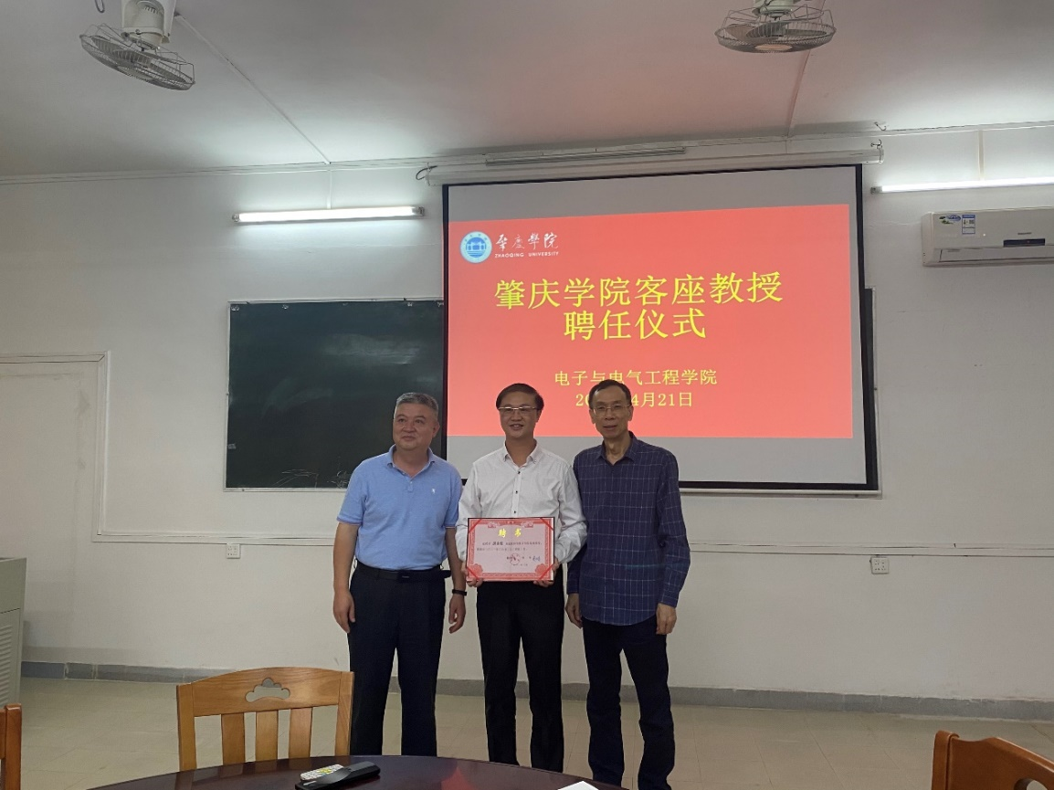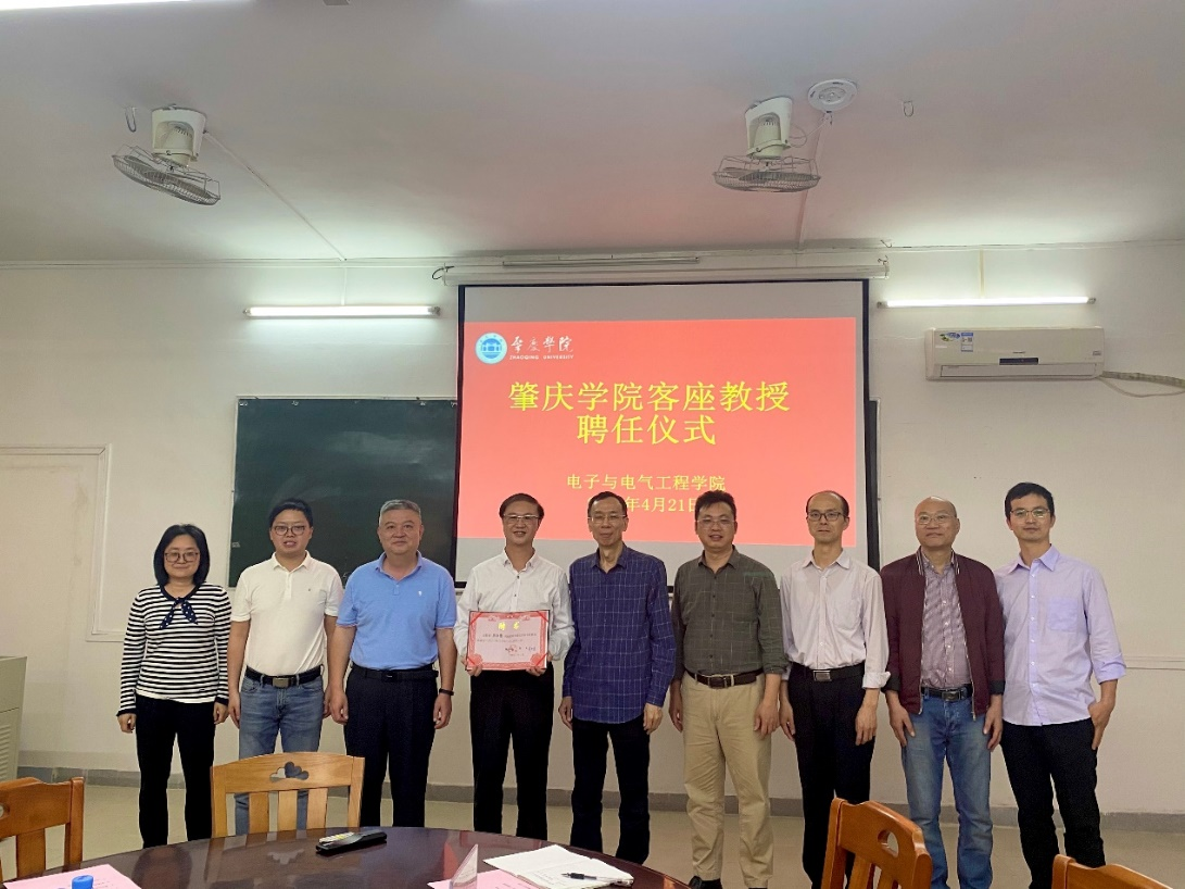 2021年4月21日下午14点30分,肇庆市颂德学校房永俊副校长受聘担任肇庆学院客座教授,受聘仪式在实验大楼208举行。电子与电气工程学院院长陈英俊、党委书记黄伟、副院长程绪信、党委副书记傅汉球、副院长叶远茂、物理系系主任李晓霞、专业负责人刘愉快及物理系教师代表参加了聘任仪式。