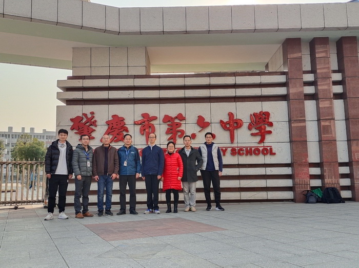 (本网讯)根据电子与电气工程学院物理学专业师范认证工作安排, 2021年1月19日下午,在我院副院长程绪信带领下,物理学系教师赵肇雄、李晓霞、康耀太等一行四人,前往肇庆市第六中学高中部开展教育教学调研工作,受到肇庆六中副校长郑天桂、教导处主任蔡奕夫等老师的热情接待和欢迎,并参观了肇庆六中校园。