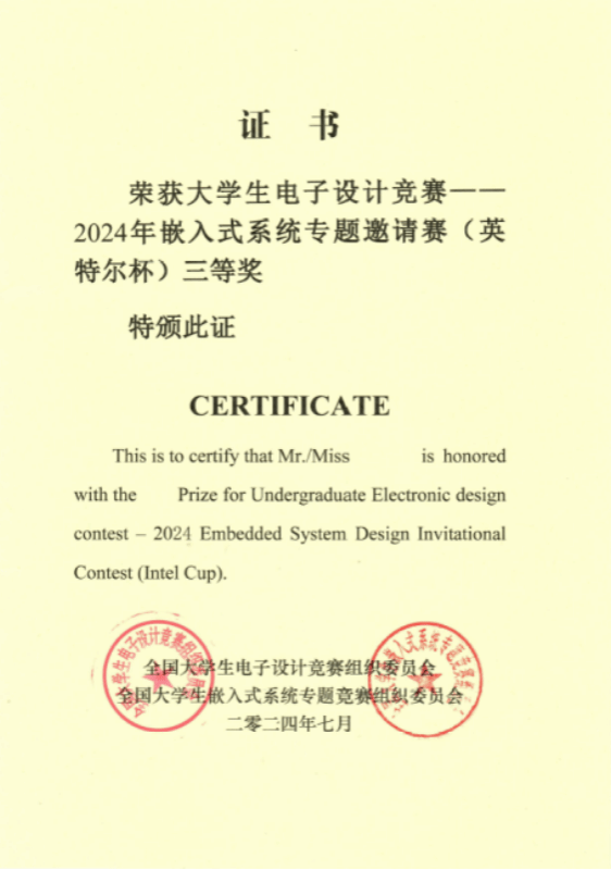 我院学子在2024年“英特尔杯”大学生电子设计竞赛