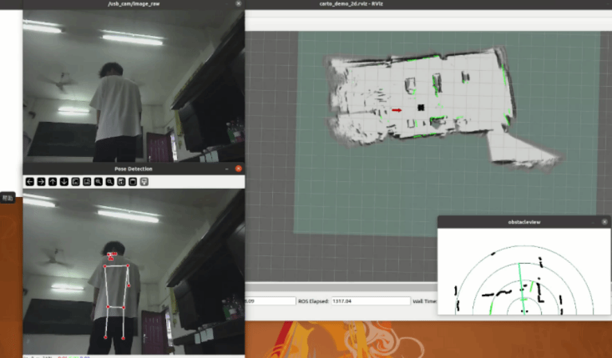 肇庆学院参赛团队由李豪、肖泽祥、丁文涛三位同学组成,薛午阳博士担任指导教师。他们的 “超市智能导购机器人” 项目融合了先进技术和创新设计,具备智慧导航、精准识别、人性化交互及无缝支付等多项功能。该机器人通过目标检测算法实现商品的高效识别与自动记账,借助激光 SLAM 技术实现精准定位与智能路径规划,凭借先进的语音识别技术实现流畅的语音交互。在项目实施过程中,团队成员日夜奋战,不断进行技术研发与测试优化,最终成功实现了项目的各项功能,评委们对该项目给予了充分的肯定和好评。