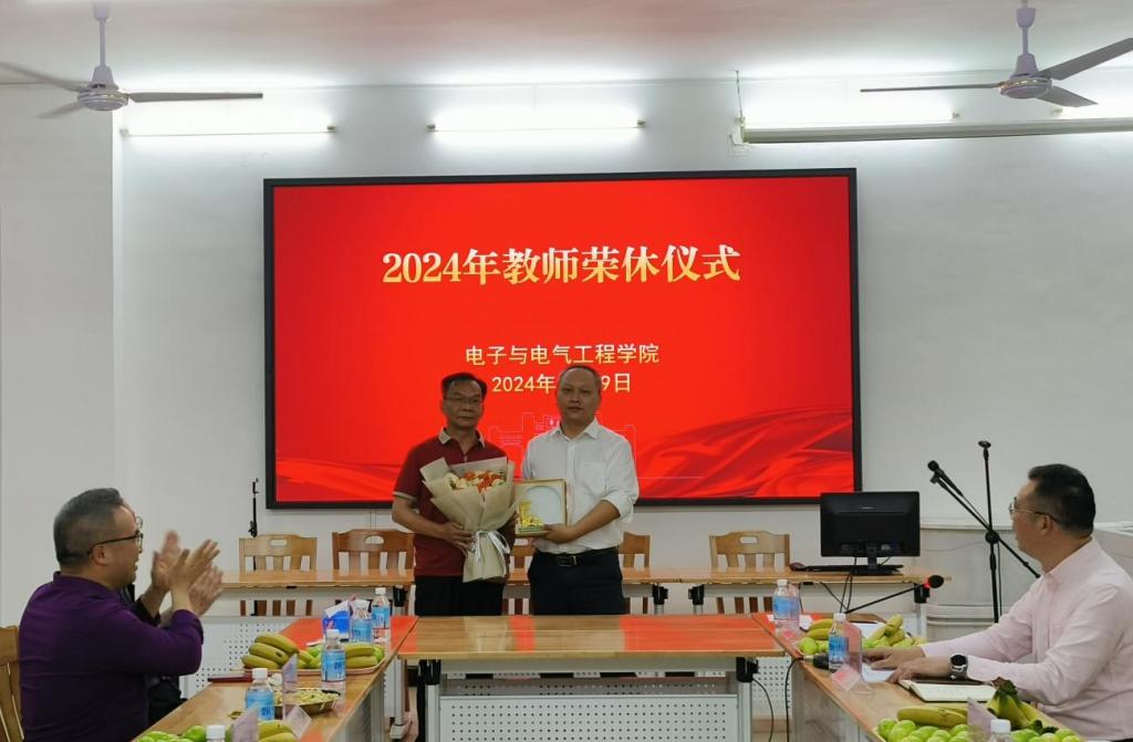 【本网讯】3月29日下午,我院在实验大楼128会议室举行2024年教师荣休仪式,向本学期退休的教师表达衷心感谢和崇高敬意。学院班子成员陈庆华、王浩发,李云鹤、程绪信、傅汉球出席仪式,荣休教师和各系主任、辅导员参加活动。荣休仪式由分工会主席傅汉球主持。