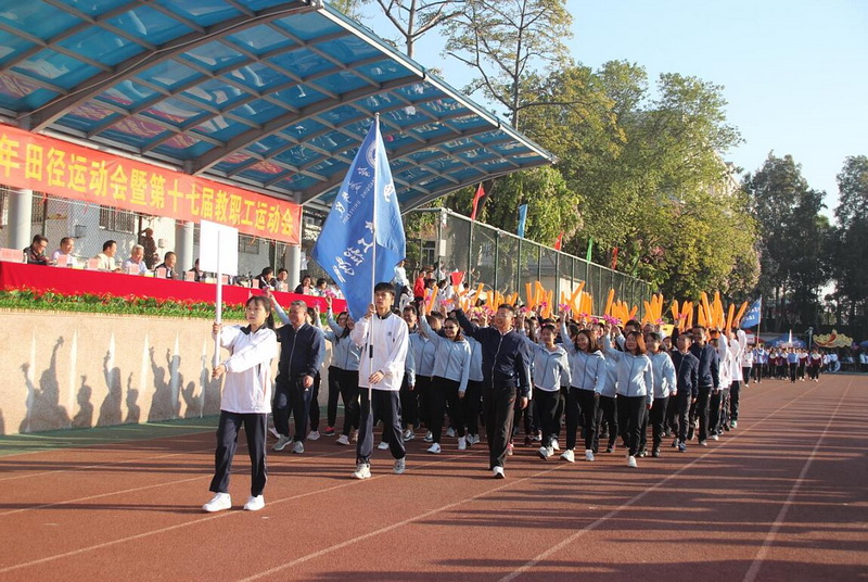 本网讯 肇庆学院2019年田径运动会暨第十七届教职工运动会于11月22—23日在学校第一和第二运动场举行。电子与电气工程学院由党委书记黄伟同志带队,组织67名师生组成的方阵参加开幕式,29名学生运动员参加各项比赛。