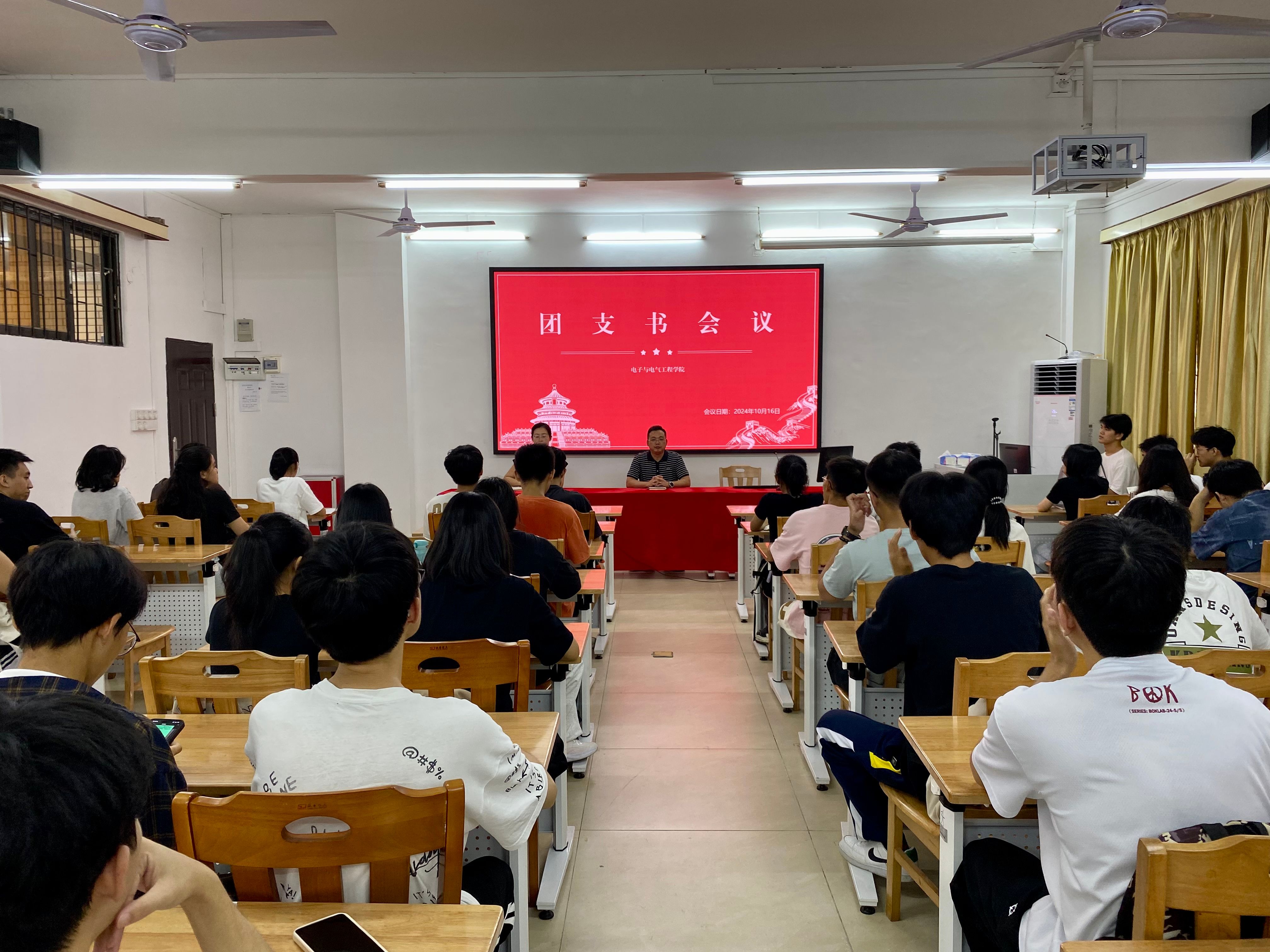【本网讯】10月16日,电子学院团委在实验大楼128会议室召开一年一度团支书工作大会。学院党委副书记傅汉球出席会议并作讲话,学院团委书记刘浏、辅导员及学院团委委员、团委各部门工作人员以及各团支部书记等60余人参加了会议。会议由刘浏主持。