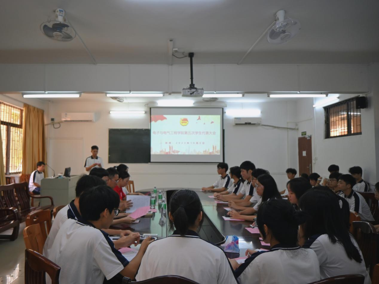 本网讯:10月9日中午,我院在实验大楼208会议室举行第五次学生代表大会。参加此次大会的领导和嘉宾有学院党委副书记傅汉球、院团委书记邱景鸿、校学生会学生代表张涵、院学生会学生代表以及各班代表共50多人。