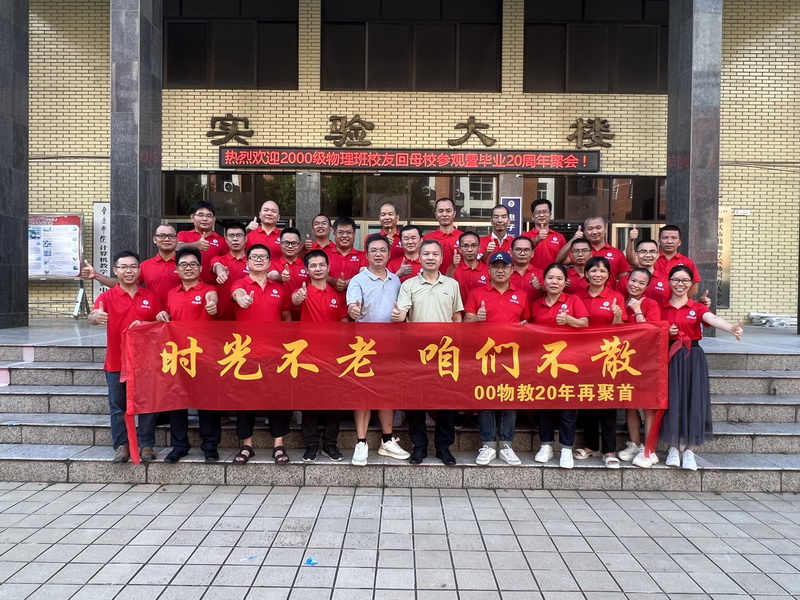 【本网讯】随着疫情过去各项社会活动回归日常。2023年7月,我院迎来了两届校友回到母校参观和座谈,一是7月23日2000级物理教育班校友30多人“毕业20周年”回校参观聚会,二是7月29日2013级电子班校友20多人“相识10周年”回校参观聚会,学院负责校友工作党委副书记傅汉球接待了校友,并组织校友座谈,原2000物理班主任现后勤管理处长欧就生参加座谈。