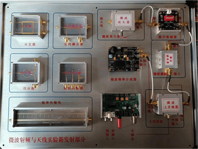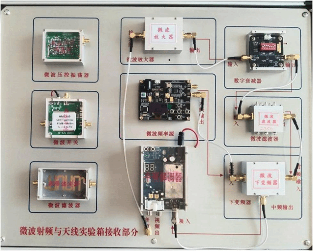 该实验系统集成了微波信号的产生、发送、传输、接收、放大、变频、滤波等各种微波信号工作处理过程,既可对微波信号各个工作处理部件进行单独研究测试分析实验,同时也可把各部件连接,组成完整的微波通信发、收系统,进行系统调测与研究。